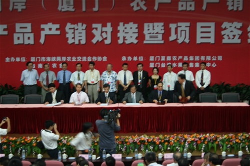 在簽約儀式之前,舉行了臺灣農(nóng)產(chǎn)品介紹、廈門市招商項(xiàng)目推介以及產(chǎn)銷對接活動。據(jù)悉,為了辦好對接活動,廈門把大陸各省市有實(shí)力的農(nóng)產(chǎn)品經(jīng)銷商都邀請到場,他們都是從事水果、蔬菜、水產(chǎn)、糧油等農(nóng)產(chǎn)品銷售的大批發(fā)市場、大經(jīng)銷商,分別來自北京、上海、南京、合肥、福州等地。(徐麗麟)