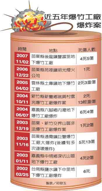 臺(tái)灣地區(qū)近五年爆竹工廠爆炸案 《聯(lián)合報(bào)》圖