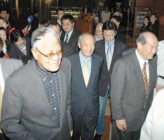 李登輝(左)昨晚宴請(qǐng)“獨(dú)派”人士,臺(tái)當(dāng)局前“中選會(huì)主委”黃石城(中)也受邀,李登輝認(rèn)為要解決臺(tái)灣當(dāng)前政治危機(jī)最優(yōu)先的辦法,就是“政局重組,建立本土派的第三勢(shì)力”!堵(lián)合報(bào)》記者林建榮攝