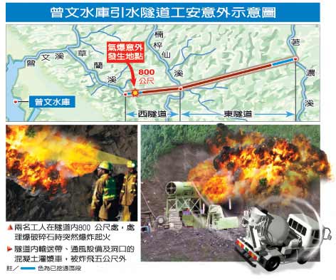中國臺灣網(wǎng)11月5日消息 據(jù)臺灣《聯(lián)合報》報道,臺當局“水利署”施工中的曾文水庫越域引水隧道工程,昨天下午1時以炸藥爆破時,可能挖到油氣礦層而發(fā)生氣爆,工人劉銘文、邱仕聰受困在隧道內(nèi),今天凌晨搜救人員先后找到兩人遺體,兩人僅相隔5、6米。