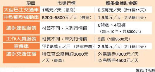 至于“入聯(lián)圣火慢跑”選手的運(yùn)動(dòng)服,“體委會(huì)”贊助28人,每人6件背心上衣、4件短褲,每人運(yùn)動(dòng)服補(bǔ)助金額高達(dá)8000元;另34位工作人員每人3套服裝,單價(jià)也高達(dá)3500元。