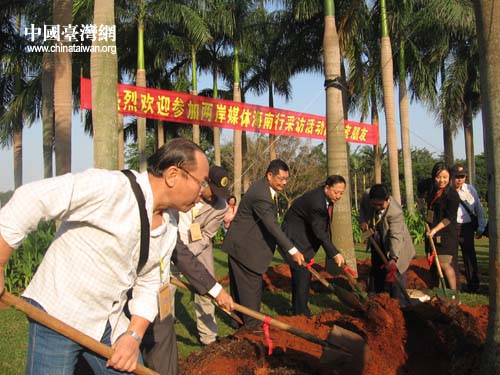 中國臺(tái)灣網(wǎng)11月30日?谙 昨天上午,參加“兩岸媒體海南行”的40余名兩岸記者共同在海口萬綠園植樹,表達(dá)兩岸新聞界保護(hù)環(huán)境,造福后代人的美好愿望,并預(yù)祝兩岸媒體的友誼像記者林一樣,根深葉茂、萬古長青。(李杰)