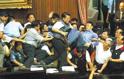 資料圖:藍(lán)營(yíng)提的“中選會(huì)組織法”草案,過(guò)去多次因綠營(yíng)霸占主席臺(tái)阻擋而未能表決。
