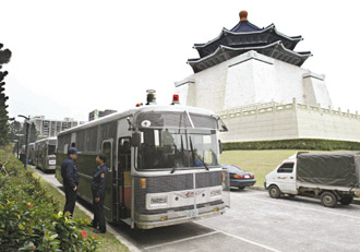 中正紀(jì)念堂廣場(chǎng)這幾天已集結(jié)零星的民眾,進(jìn)駐的保警為免刺激民眾,目前都部署在隱密的地方。(高大林)