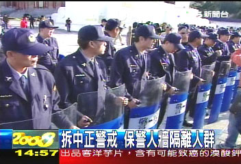 之所以突然出現(xiàn)大批警察,據(jù)TVBS了解是因為臺當局“教育部”和館方,正在將主建筑物上的字體“中正紀念堂”,要改成“臺灣民主紀念園區(qū)”,擔心里面施工時,被外面抗議民眾看見,會再發(fā)生更大的沖突,所以才會請來警力戒備。(高大林)