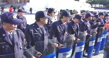 三百多名鎮(zhèn)暴警察拿著盾牌圍成人墻,一步步往“大中至正”牌樓外走,希望驅(qū)離還在牌樓內(nèi)的民眾。(臺(tái)灣TVBS圖)
