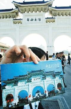 中正紀(jì)念堂園區(qū)重新開(kāi)放,一早就涌入大批觀光客,一位導(dǎo)游帶著舊版導(dǎo)覽手冊(cè)讓游客了解“大中至正”更名為“自由廣場(chǎng)”的過(guò)程。(聯(lián)合晚報(bào)圖)