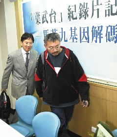“打馬”光盤制作人許逢麟(右)昨天召開記者會,被質(zhì)疑所取得的新聞畫面版權(quán)來源時,僅表示如電視臺認為有問題請舉證,隨即匆匆離去!堵(lián)合報》記者潘俊宏攝