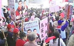 臺灣“高等法院”審理馬英九特別費案,今天宣告馬英九無罪,法庭外的藍軍支持者興奮高喊“凍蒜”(當選)口號。(東森新聞圖)