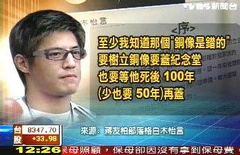 蔣友柏還認(rèn)為中正紀(jì)念堂樹(shù)立蔣介石銅像是錯(cuò)的,要樹(shù)立銅像要蓋紀(jì)念堂,也要等他過(guò)世后100年至少也要50年,“人民想替你蓋,才叫真?zhèn)ゴ蟆薄?/P>