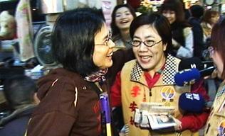 為了替臺聯(lián)黨選情加溫,李安妮7日一大早到自家附近熟悉的傳統(tǒng)市場拜票,與攤販們搏感情爭取支持。(東森新聞圖)