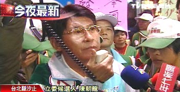 選戰(zhàn)最后一個星期,“立委”候選人使出十八般武藝,爭取媒體報道。民進黨提名的現(xiàn)任“立委”陳朝龍,因為不滿對手李慶華質(zhì)疑他賄選,率領支持者到對方競選總部抗議。