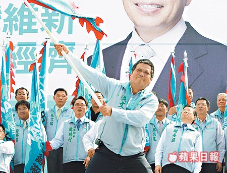 報(bào)道說,“長昌配”高雄縣競選總部昨天成立,在謝、蘇授旗給各后援會干部時(shí),由于旗桿太長,差點(diǎn)打到站在后面的謝長廷與高雄縣長楊秋興,謝、楊頻頻后仰閃避。職工后援會長蘇炎城揮旗時(shí),旗桿突然斷成兩截,旗面拋飛出去,謝長廷微怔,蘇貞昌與楊秋興則十分錯愕。(周先)