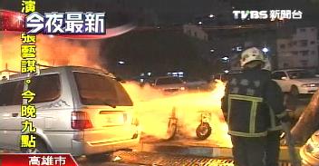 報(bào)道說,位于高雄市三多戲院對(duì)面的人行道一部摩托車晚間突然起火,由于現(xiàn)場(chǎng)停滿摩托車,加上風(fēng)勢(shì)助長(zhǎng)火勢(shì),火勢(shì)一發(fā)不可收拾。高雄市消防局據(jù)報(bào)出動(dòng)八輛消防車前往灌救,火勢(shì)于11分鐘內(nèi)被撲滅,造成12輛摩托車全毀,兩部半毀。