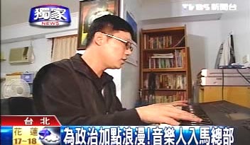 馬英九忙著拜訪行程,背后卻多了個陌生男子,戴著眼鏡低調(diào)穿梭人群;原來他就是馬蕭競選總部的新面孔——廖唯超。廖唯超過去是詞曲創(chuàng)作人,臺灣著名歌手孫淑媚、張秀卿、張清芳,多首膾炙人口的歌曲,都是出自于他的創(chuàng)作。談起自己最愛的音樂,廖唯超滿臉笑容;不過他說,自己投身輔選的心意,就和一樣喜愛音樂的心,一樣篤定。