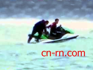 王世堅(jiān)乘水上摩托車出海。