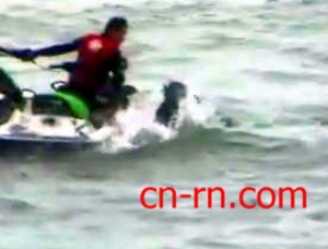 連忙爬上水上摩托車,拖回岸邊。