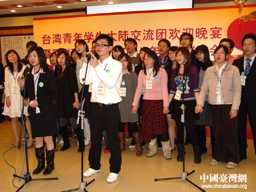 當(dāng)參加活動的兩岸大學(xué)生共同演唱起原創(chuàng)歌曲《我們的心》時(shí),聯(lián)歡會達(dá)到了高潮。在歡聲雷動的大堂里,兩岸青年用歌聲為大陸與臺灣的所有朋友送上了新春的祝福。