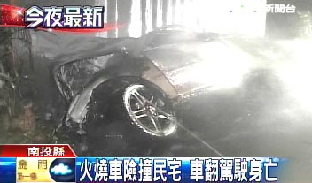 中國臺(tái)灣網(wǎng)2月3日消息 據(jù)臺(tái)灣東森新聞報(bào)道,2月3日晚,南投中潭公路32公里處,一輛小轎車疑因?yàn)檐囁龠^快失控翻落水溝,滑行撞上一戶民宅,結(jié)果轎車引發(fā)爆炸,司機(jī)當(dāng)場(chǎng)被燒死在車內(nèi)。
