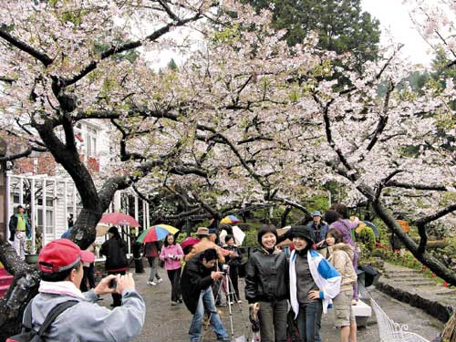 中國(guó)臺(tái)灣網(wǎng)2月4日消息 據(jù)臺(tái)灣《聯(lián)合晚報(bào)》報(bào)道,島內(nèi)景氣差,造成各風(fēng)景區(qū)游客驟減,但也有不少新舊景點(diǎn)靠創(chuàng)意、創(chuàng)新,殺出重圍。這幾年來(lái),阿里山森林游樂(lè)區(qū)的步道等游憩設(shè)施改善,加上新年日出音樂(lè)會(huì)、櫻花季等活動(dòng)打響名號(hào),最近幾年游客回升,前年更逼近100萬(wàn)人次。圖為阿里山回春,游客聚集在櫻花樹(shù)下。(周先)