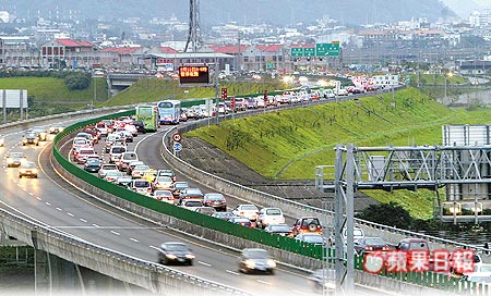 春節(jié)期間,臺灣雪山隧道天天塞爆。(蘋果日報(bào)圖)