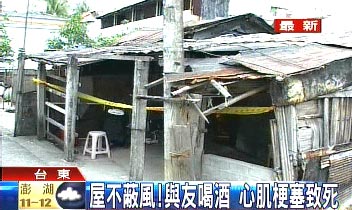 中國臺灣網(wǎng)2月13日消息 據(jù)臺灣TVBS電視臺報(bào)道,臺東近日出現(xiàn)低溫天氣,昨晚更是達(dá)到入冬以來最低溫13度,造成2人凍死,其中1名男子是和朋友在木屋喝酒,簡陋的屋子擋不住寒風(fēng),這名男子在睡夢中疑似心肌梗塞死亡。