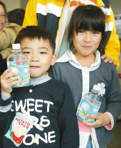 貓纜搭乘破300萬人次,臺(tái)北捷運(yùn)公司現(xiàn)場(chǎng)限量發(fā)送一萬瓶Q版貓纜水瓶。(臺(tái)灣《聯(lián)合報(bào)》圖片)