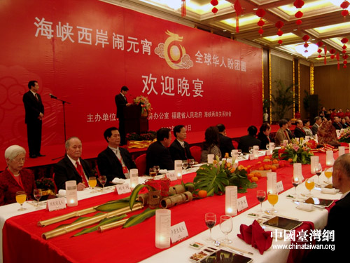 中國臺灣網(wǎng)2月19日福州消息 18日晚,國務(wù)院僑務(wù)辦公室、福建省人民政府和海峽兩岸關(guān)系協(xié)會在福州市舉辦晚宴,歡迎來閩參加“海峽西岸鬧元宵 全球華人盼團(tuán)圓”活動的來賓。本次活動吸引了來自世界上五大洲40多個國家和地區(qū)的500多位華僑華人、港澳同胞和臺灣同胞參與。