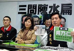國民黨“立法院”黨18日再度針對臺當局籌設(shè)鐽震公司發(fā)表看法并三問陳水扁,同時呼吁“國防部長”李天羽勿成“A錢的幫兇”。臺灣東森新聞記者朱家彥攝
