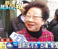 呂秀蓮前一秒話說還很沉重,下一秒已經(jīng)自我調(diào)適:“其實我很久就提倡中(三)通,昨天我還跟陳水扁報告這構(gòu)想,好高興今天有這樣的披露,很開心我想趕快退休!