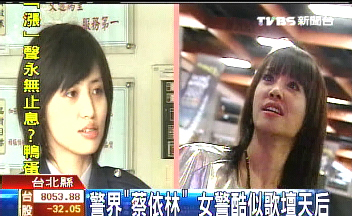 據(jù)臺灣TVBS電視臺報道,雖然使出擒拿術(shù)對付色狼,或是逮捕持有刀械的歹徒,26歲的女警蔡宜蒨都很專業(yè),但她亮眼俏麗的外表,更讓她迅速爆紅,直挺的鼻子、微厚的嘴唇,尤其是笑開來,跟蔡依林還真的極為相似,甚至被學(xué)長們昵稱是“警界的蔡依林”。