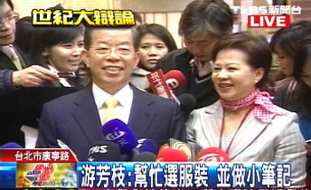 謝長廷與夫人游芳枝。ㄅ_灣TVBS電視臺圖片)