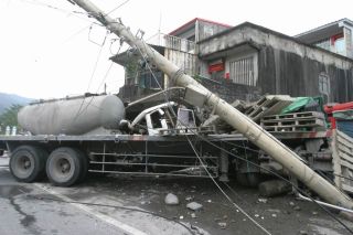 中午12點半,北部濱海公路宜蘭縣頭城梗枋路段也傳出車禍。一輛載有混凝土的水泥車和板車疑似因為超車不當,在北上車道彎道處失控撞進路旁民宅,造成3人受傷。事故發(fā)生后,宜蘭縣消防局緊急動員救難人員和3部救護車及破壞器材前往搶救。40分鐘內將受困民眾一一救出,3名傷者被送醫(yī)時都還有意識。在這起事故中,肇事車輛同時撞斷路旁電線桿,一度造成頭城梗枋地區(qū)3300百多戶用戶停電和當地交通受阻。