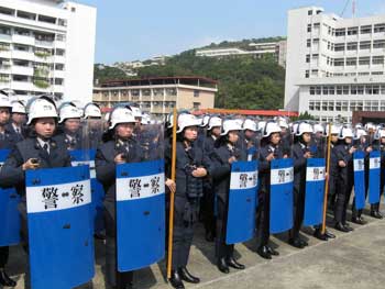 全副武裝的女警屆時(shí)將參加3月22日臺(tái)灣地區(qū)領(lǐng)導(dǎo)人選舉維安(臺(tái)灣“中時(shí)電子報(bào)”方佳怡攝)