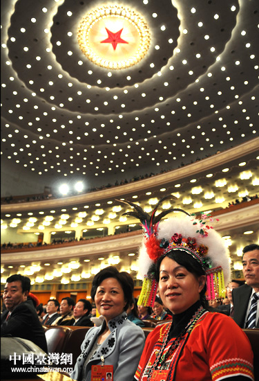 3月5日,十一屆人大開幕當(dāng)天,臺灣代表從轎車上魚貫而下,陳軍一身套裝,并不見預(yù)想中的高山族服飾。直到進入人民大會堂,她才換上民族裝。低調(diào),是這位新代表留給媒體的普遍印象。