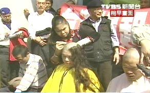 “拒領(lǐng)公投票聯(lián)盟”上午在臺(tái)灣“立法院”群賢樓前召開記者會(huì),十幾位成員響應(yīng)剃光頭活動(dòng),剃光頭的人士中包括“紅衫軍”自主公民協(xié)會(huì)理事長(zhǎng)林正杰,而唯一一位女性鄭美英,因長(zhǎng)發(fā)及腰備受注目。鄭美英表示,頭發(fā)已留了12年,頭發(fā)再留就有,只希望臺(tái)灣經(jīng)濟(jì)能好起來(lái),能換一個(gè)很有智慧的領(lǐng)導(dǎo)人將經(jīng)濟(jì)帶領(lǐng)到很好的階段。