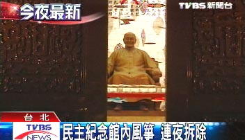 另據(jù)臺灣TVBS報道,“臺灣民主紀念館”里的300多支風箏,將在今天晚上連夜拆除,288基金會表示,拆除風箏后,大廳里不會只有蔣介石銅像,其它的空間規(guī)劃,準備下星期公諸于世。而拆風箏的過程,原本不準任何媒體拍攝,但和綠營關系不錯的臺灣民視電視臺卻被允許拍攝。(高大林)
