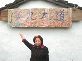 苗栗馬家莊暴紅,有民眾在家門(mén)外掛上“英九大道”路標(biāo)。(聯(lián)合報(bào)圖)