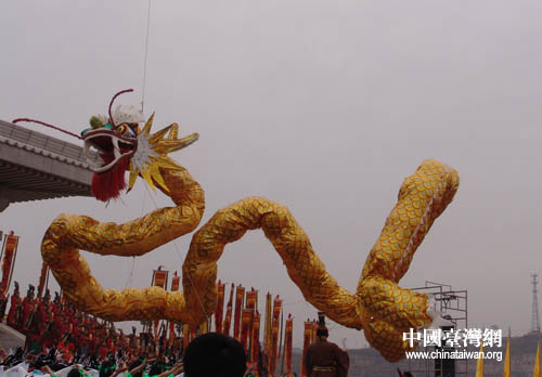 《龍馭》是一條黃色的巨龍從軒轅殿的穹頂騰空而起 (攝影:李艷波)