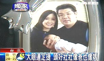 TVBS報道稱,照片里的連定捷才剛滿1個月,躺在爸爸連勝文大大手掌中顯得特別嬌小,安靜的連定捷睜大眼,跟初為人父、初為人母的連勝文、蔡依珊,拍下全家福。