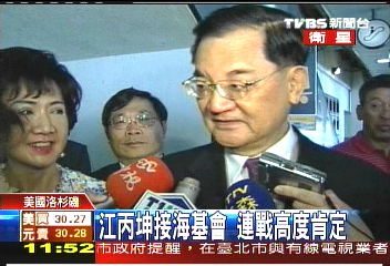 江丙坤將出任臺(tái)灣海基會(huì)董事長(zhǎng),連戰(zhàn)高度肯定。(圖片來(lái)源:臺(tái)灣TVBS)