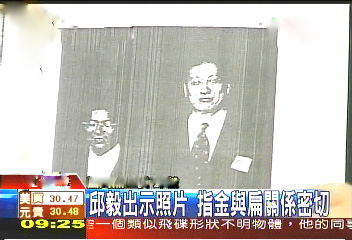 邱毅出示陳水扁與金紀(jì)玖的合照。(圖片來源:臺灣TVBS)