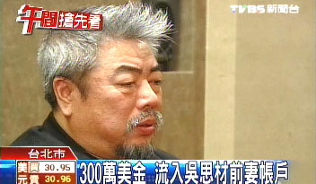 中國(guó)臺(tái)灣網(wǎng)5月14日消息 據(jù)臺(tái)灣TVBS電視臺(tái)報(bào)道,臺(tái)灣檢調(diào)部門(mén)偵辦臺(tái)當(dāng)局“金援弊案”取得重大進(jìn)展,已經(jīng)被收押的中間人吳思材,雖然表示沒(méi)拿到半毛錢(qián),但根據(jù)洗錢(qián)調(diào)查資料,早在去年年初,吳思材就從新加坡賬戶(hù),匯了300萬(wàn)美元到其前妻的臺(tái)灣賬戶(hù)中。