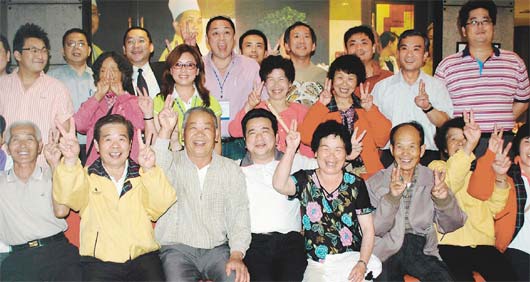 臺祥鶴旅游團11名首批脫困團員,昨天晚上接受成都市臺商協(xié)會宴請,許多團員合影時比出“ya”手勢,慶幸歷劫歸來。(中央社) |