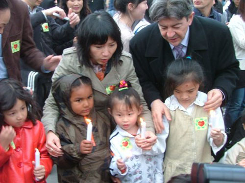 中國臺灣網(wǎng)5月19日消息 巴黎當?shù)貢r間5月18號晚,近千名在法華人、華僑、留學生和法國友人聚集在埃菲爾鐵塔下,為“5?12”四川大地震遇難者舉行燭光祈福會,以表達對地震災區(qū)逝者的哀思和對生者的祝福。法國前總統(tǒng)希拉克的養(yǎng)女英瑤?特拉塞爾(Mme. Anh Dao Traxel)女士作為本次活動的主辦支持人,與丈夫一起出席。法國社會黨籍前部長、現(xiàn)任參議員讓?呂克?梅朗雄也出席了本次活動。