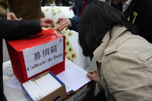 法國友人與法國華人華僑和留學生一起為四川大地震遇難者進行祈禱。圖中為法國前總統(tǒng)希拉克的養(yǎng)