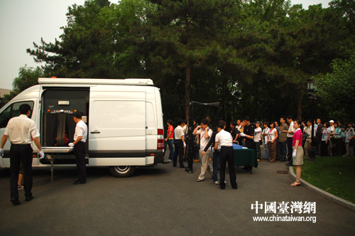 釣魚臺國賓館外面記者排隊安檢。(攝影:田云鵬)