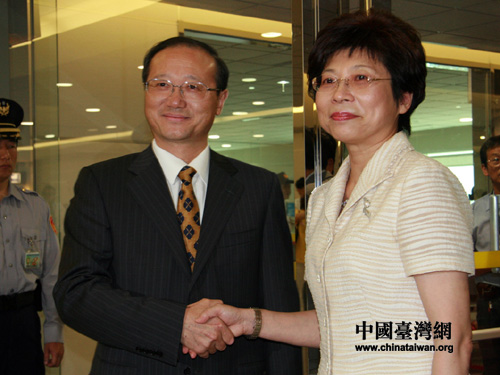 臺灣海峽兩岸觀光旅游協(xié)會會長賴瑟珍前往機場迎接海峽兩岸旅游交流協(xié)會會長邵琪偉(攝影 李徽)