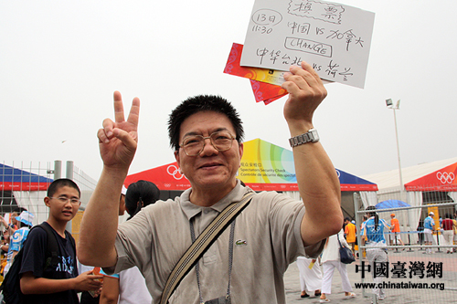 來自臺灣的陳裕輝先生在場外徘徊了一個多小時終于換到中華臺北隊的比賽門票(攝影 李徽)