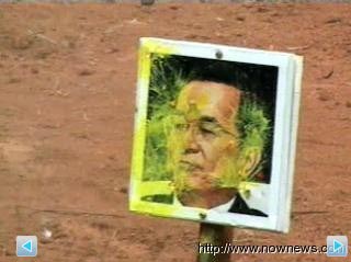 臺(tái)中都會(huì)公園一家漆彈場(chǎng)開(kāi)辟不滿(mǎn)發(fā)泄區(qū),讓游客提供討厭對(duì)象的相片當(dāng)槍靶發(fā)泄,現(xiàn)在最紅的就是陳水扁家庭成員。來(lái)源:臺(tái)灣今日新聞